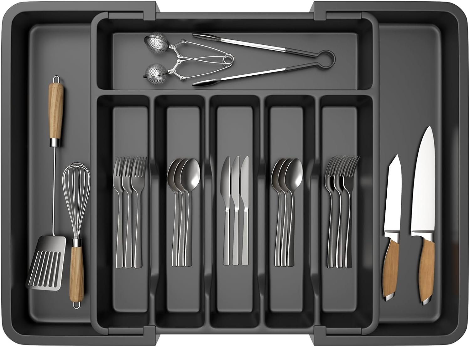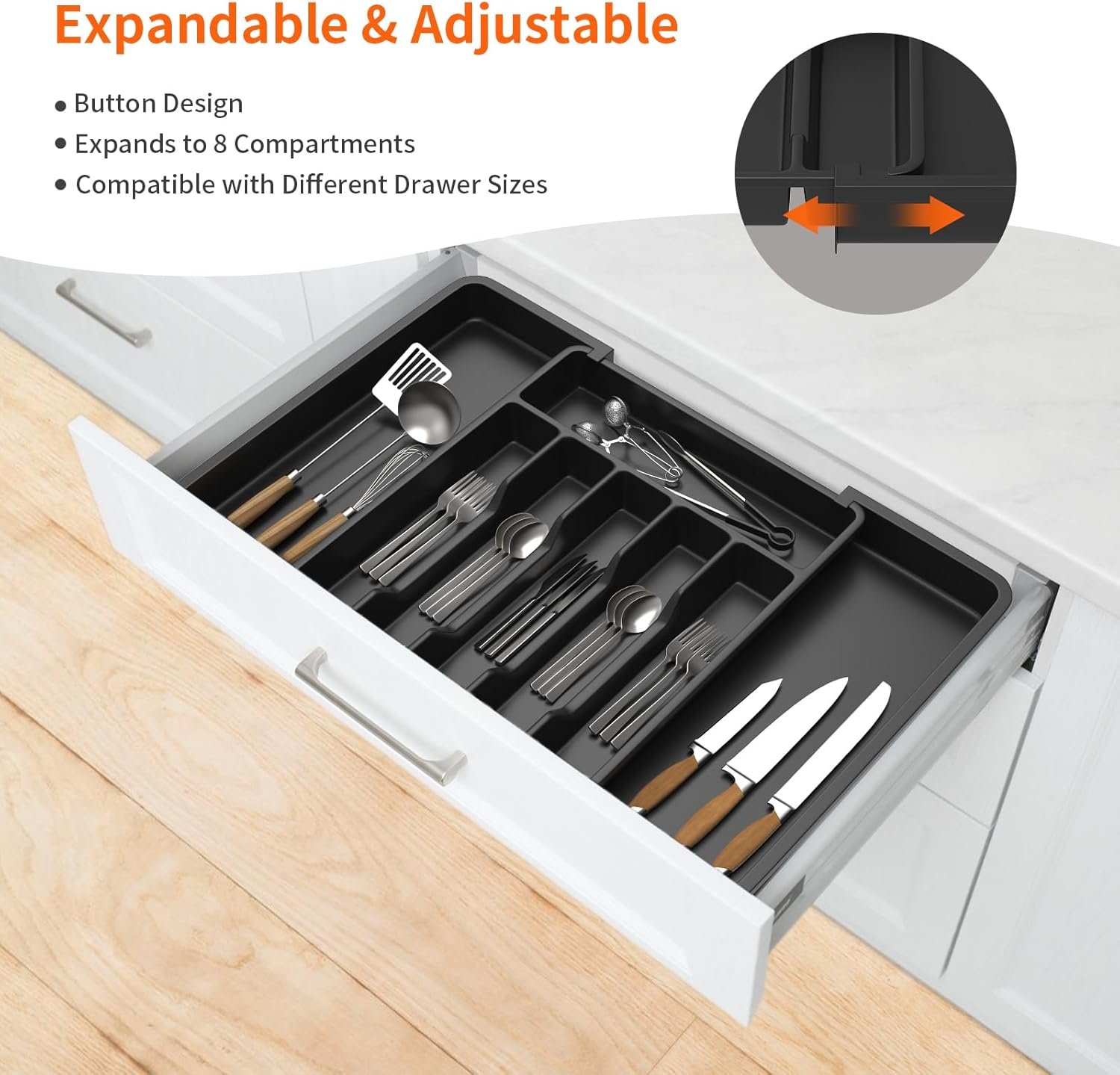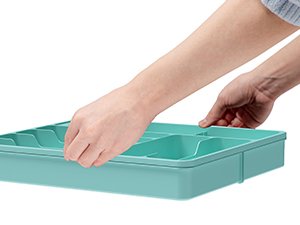 Meget praktisk med justerbare kompartimenter! Jeg kan tilpasse pladsen efter mine forskellige st?rrelser af bestik og redskaber.