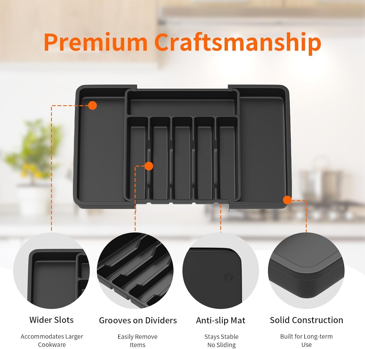 Kvaliteten er bedre end forventet ¨C materialet er holdbart og robust, uden at f?les billigt. Det passer til de fleste standard skuffer i k?kkenet.