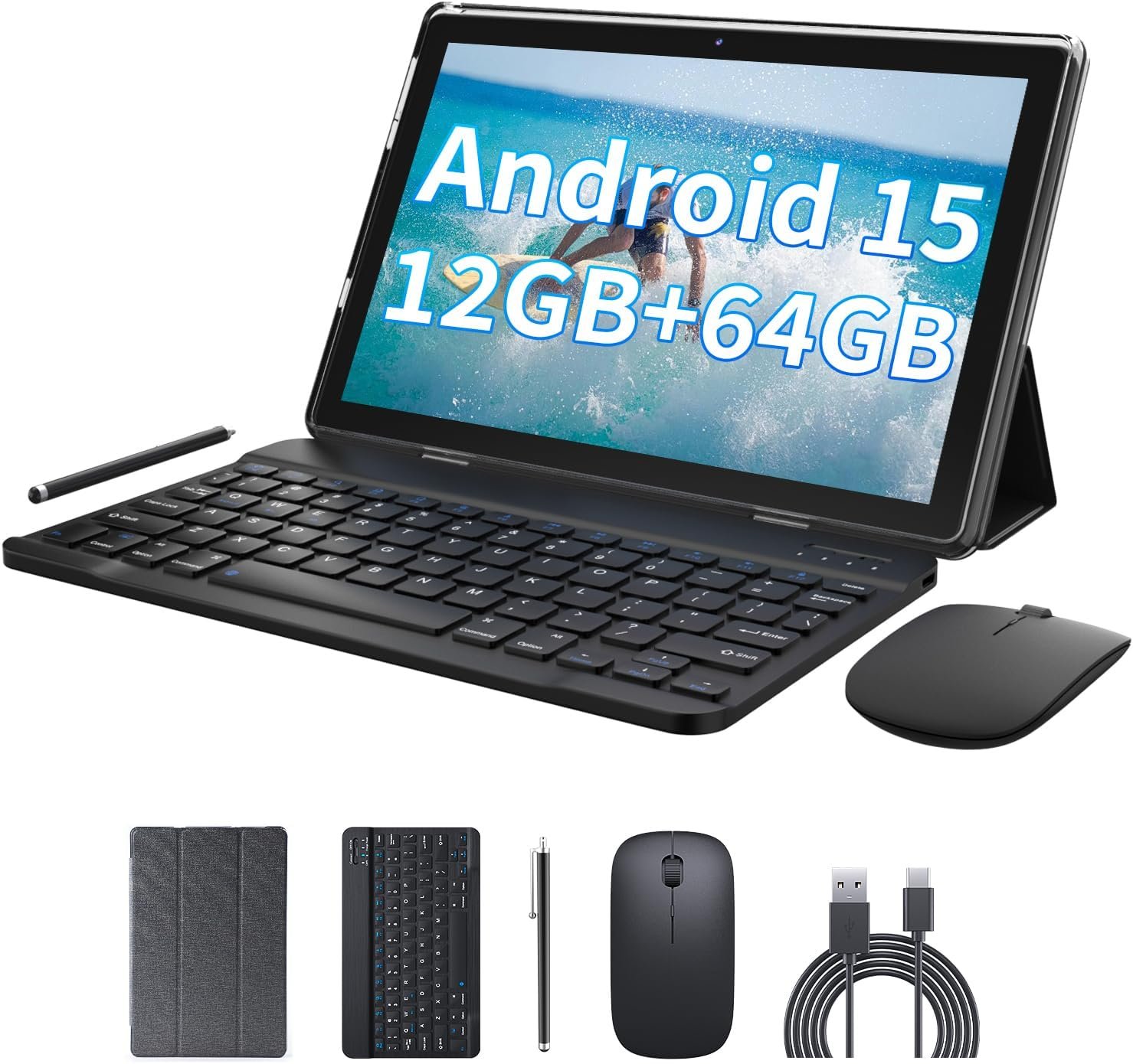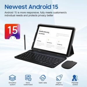 PRITOM 10.1″ Android 15 Tablet with Keyboard, Mouse, Stylus, Case & Kickstand – 64GB, 6000mAh Battery