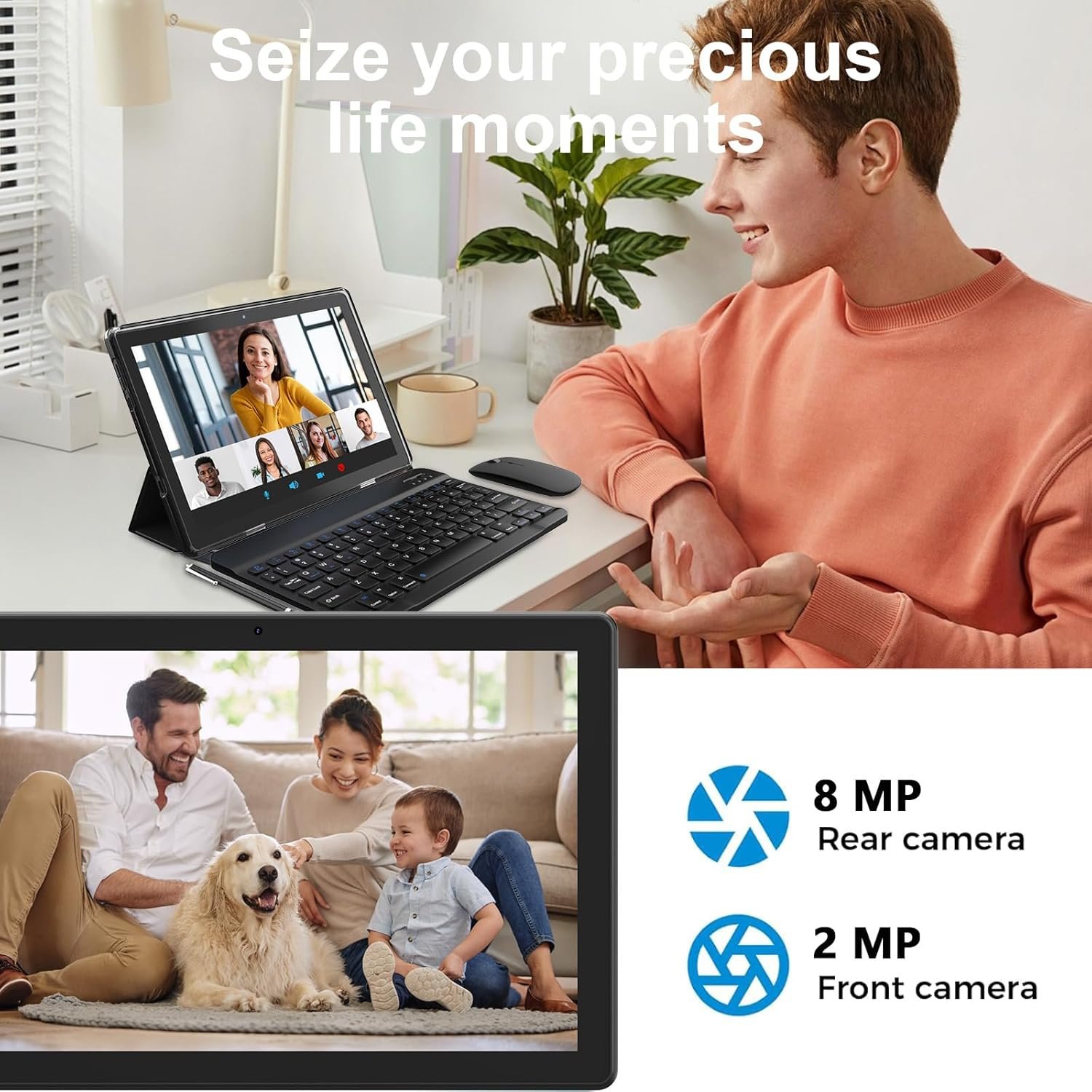 Equipped with a 2MP front camera and an 8MP rear camera, this tablet captures clear photos and videos, making it perfect for sharing moments on the go.